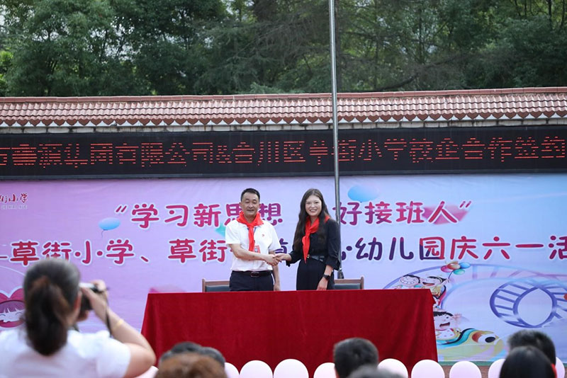2023年5月31日,品牌與用戶關系部、人力行政部代表鑫源集團參加了合川區草街小學舉辦的“學習新思想,當好接班人”——草街小學慶六一主題活動。活動中,集團與草街小學簽署了新的校企合作協議,根據協議,未來將加大對草街小學的幫扶力度,雙方合作再深化、再升級。