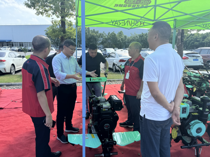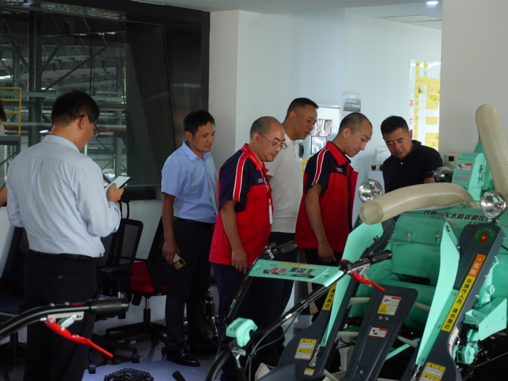 專(zhuān)家組一行首先在鑫源農(nóng)機(jī)多媒體中心聽(tīng)取了鑫源集團(tuán)企業(yè)發(fā)展介紹,在黃總的指引下,專(zhuān)家組走到了產(chǎn)品展示區(qū),技術(shù)負(fù)責(zé)人丁小兵向大家分別介紹了我司的小霸王微耕機(jī)、田園管理機(jī)、鑫源收割機(jī)、發(fā)電機(jī)組、園林草坪機(jī)等核心產(chǎn)品。大家邊聽(tīng)介紹邊仔細(xì)打量產(chǎn)品的每個(gè)細(xì)節(jié),還時(shí)不時(shí)掏出手機(jī)拍照記錄,對(duì)鑫源農(nóng)機(jī)的產(chǎn)品品控給予好評(píng),過(guò)程中專(zhuān)家組心系企業(yè)發(fā)展,特別詢(xún)問(wèn)了鑫源農(nóng)機(jī)產(chǎn)品銷(xiāo)量和盈利情況,大家對(duì)此進(jìn)行了深入交流和探討。