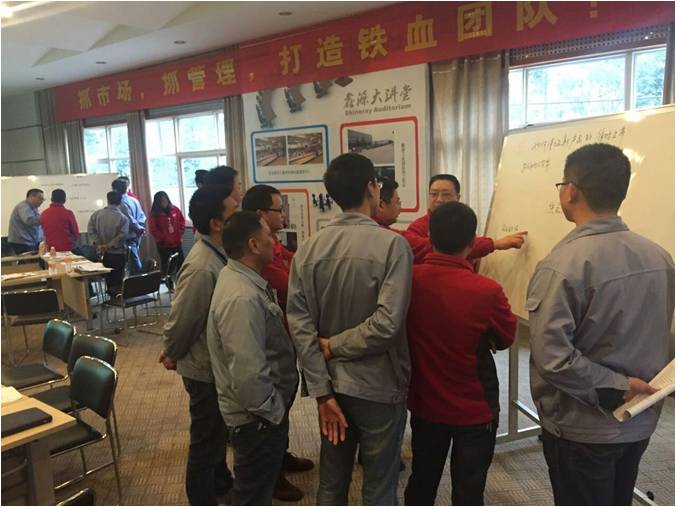鑫源管理學(xué)院曹院長在研討會(huì)開始前結(jié)合自身經(jīng)歷,與全體成員進(jìn)行了經(jīng)驗(yàn)分享。之后,在曹院長的引導(dǎo)下,所有參訓(xùn)學(xué)員分為三組,每個(gè)組針對(duì)農(nóng)機(jī)公司現(xiàn)目前經(jīng)營的焦點(diǎn)問題,層層剖析,找到解決問題的阻礙因素和解決措施。