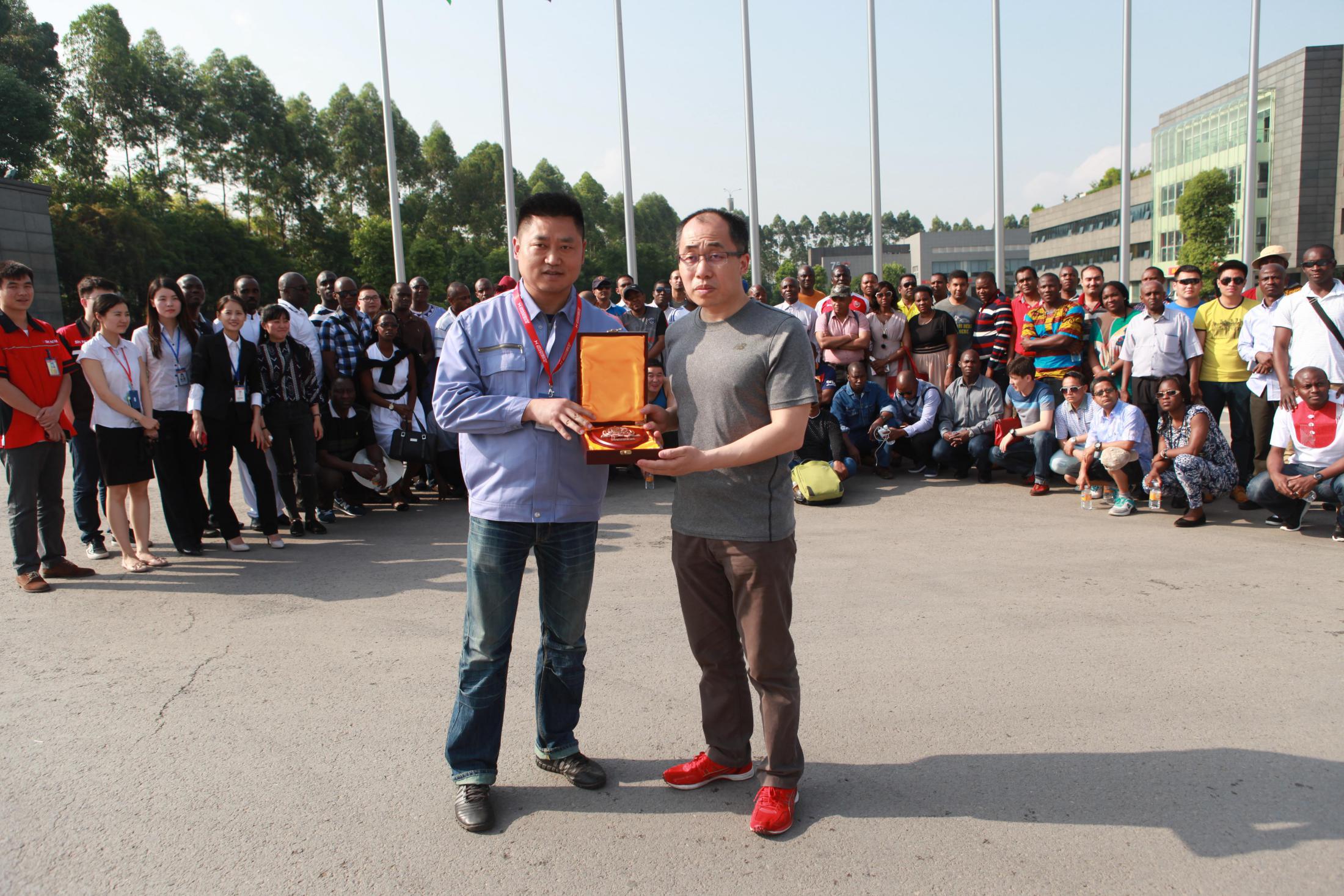 參觀結束后,樊總向來賓代表贈送了紀念品并合影留念。
