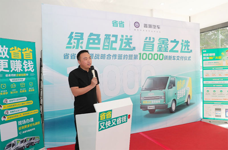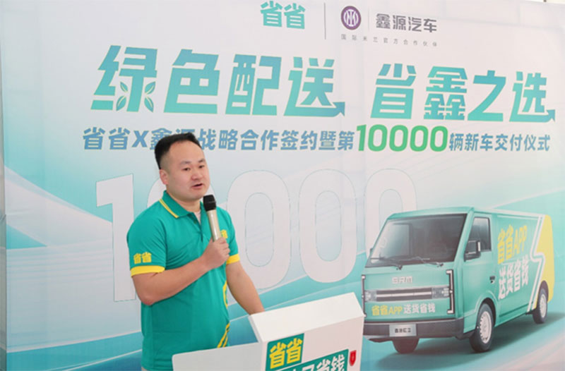 在活動現場,記者也見證了省省平臺第10000個購置鑫源汽車的用戶的交車儀式,他訂購的正是一輛最新款的鑫源新能源車E3L。該用戶表示,開新能源貨車省心不說,還能節省大筆的油費和保養成本,而且在城市中更方便,使用成本低,也幾乎不限行,運貨做生意更賺錢。