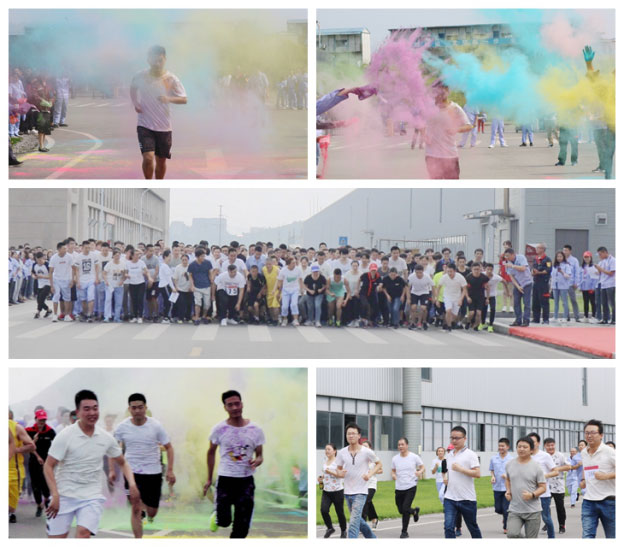 萬事俱備,汽車公司常務(wù)副總鐘秉福一聲令下,正式比賽一觸即發(fā)!五顏六色的彩粉漫天飛灑,剎那間,一幅幅風(fēng)格迥異的彩色圖畫在參賽隊員的服裝上生長,滿是彩粉的頭發(fā)和臉頰鮮活了整個賽道。通過拋灑彩粉,傳達出健康繽紛的生活理念,消除家人們在工作和生活中的誤解和不快,跑出絢爛多彩新生活!
