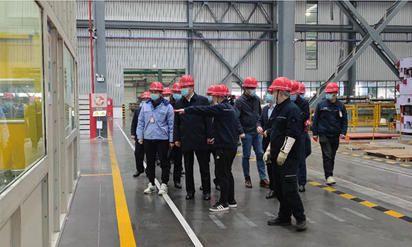 安全管理工作匯報完畢后,副總經理劉渝總帶領參觀了沖壓車間,沖壓車間主任張世元全程解說,對沖壓車間的重大危險源管理、本質安全提升及改進等工作進行詳述,參觀過程中,重慶市委政法委黃副書記對沖壓車間的自動化設備表示贊揚:從半自動化改為自動化,根本上減少了人員的操作,人員的受傷風險得到了很好的管控,這才是真真切切地貫徹了“生命至上”的安全發展理念,本質上提升了安全水平。