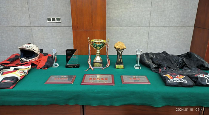 在捐贈儀式上,鑫源國際車隊捐贈了當(dāng)年的比賽服裝、靴子、以及在中國環(huán)塔拉力賽中獲得的獎杯、獎牌等。在這些賽場榮譽后面,還有許多無私奉獻、團結(jié)協(xié)作,傳播人間真情的故事。