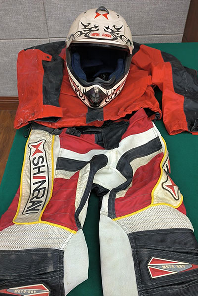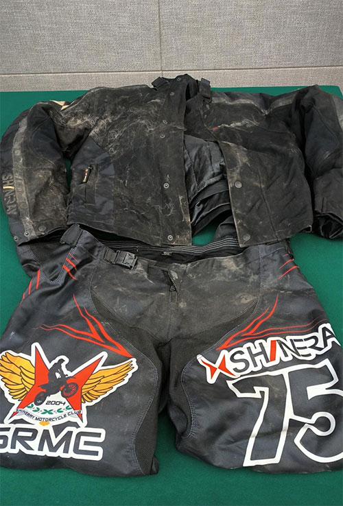 上圖這件衣服是鑫源國際車隊的騎行服裝。2008年汶川地震期間,車隊組織了12臺越野車,42名車手,八天八夜穿行在汽車和常規(guī)摩托車不能到達的災(zāi)區(qū)一線,救助了1000多名傷員!