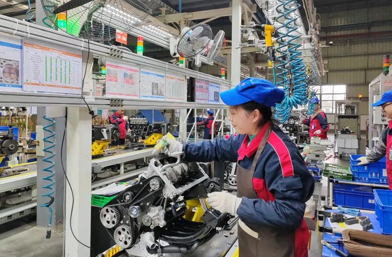 “無他,唯手熟爾。”熟能生巧說起來容易,做起來難,熟練操作的背后是無數次的練習與修正。動力裝配車間的女工需要第一時間檢查,機油盤各密封處涂膠是否均勻,同時迅速使用扳手擰動螺絲,保證每顆螺栓緊固到位,達到標準力矩值。
